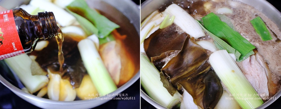 끓기 시작하면 거품을 걷어낸 뒤 뚜껑 덮고
