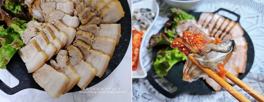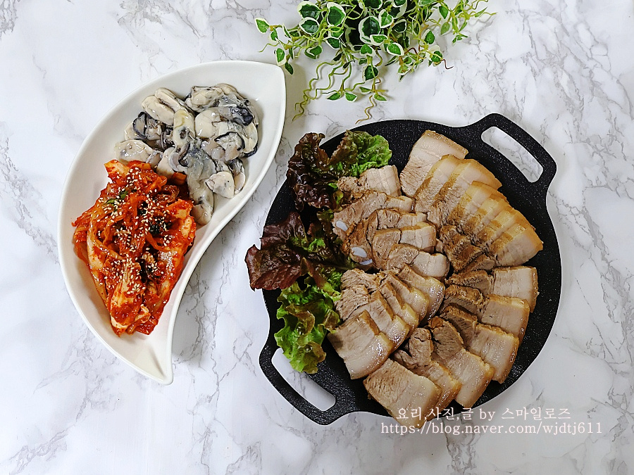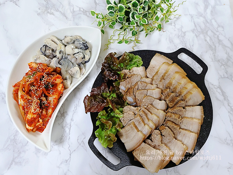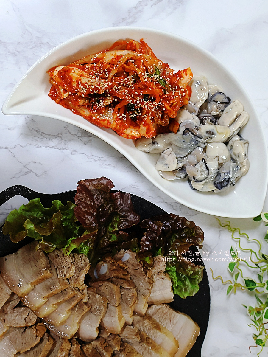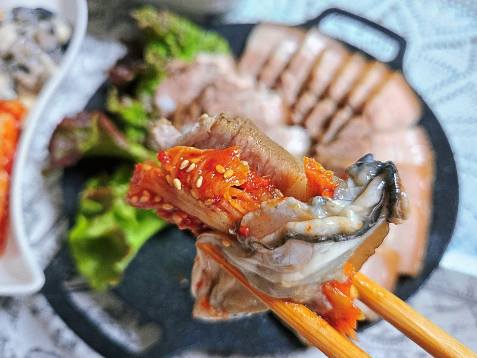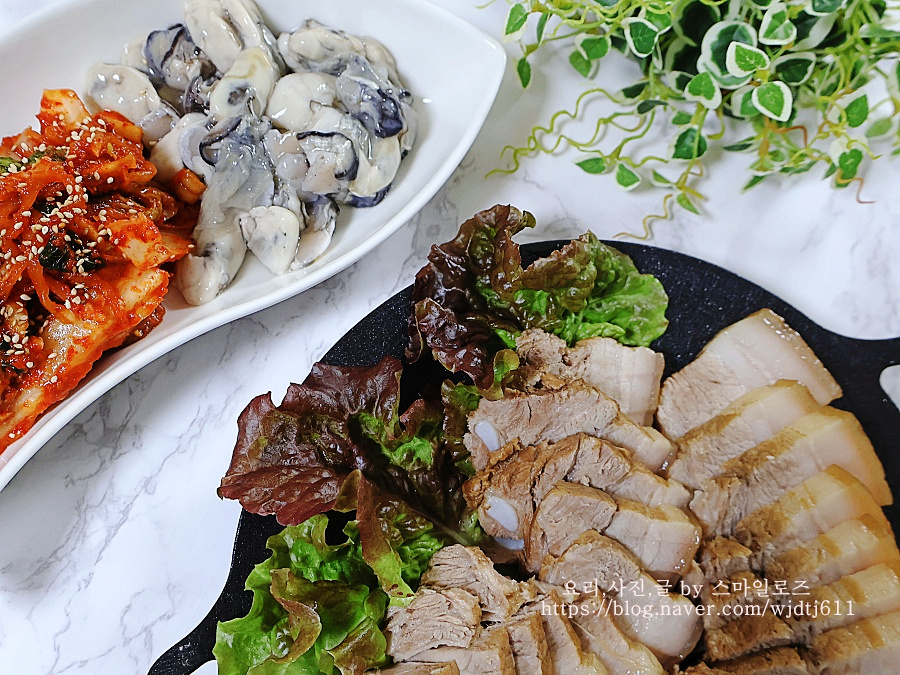 요즘 제철인 굴을 곁들였더니 굴과 수육이 어울리지 않을 것 같은데