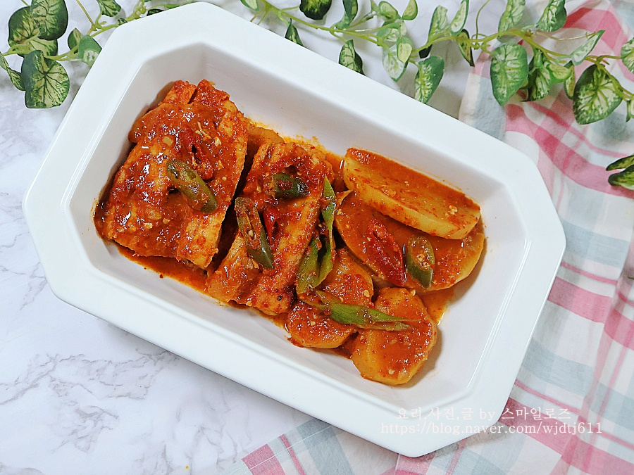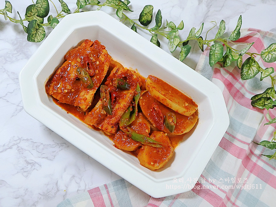생선조림에 주로 무를 넣어 만들지만 감자를 넣어도 감자의 포슬포슬함이