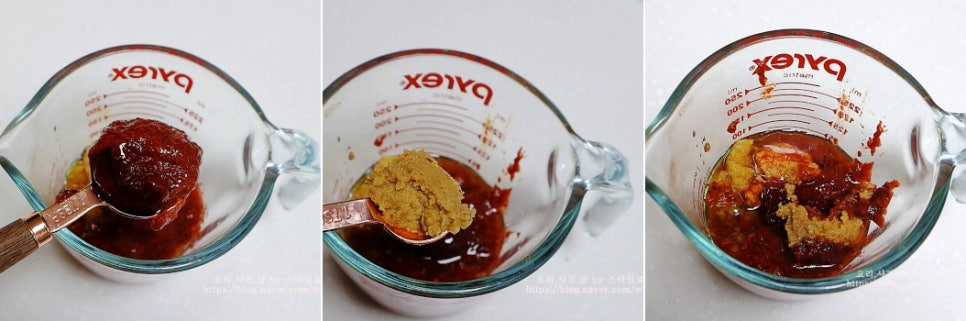 고추장 1큰술과 된장 1작은술을 넣고 양념장을 만들어 줍니다