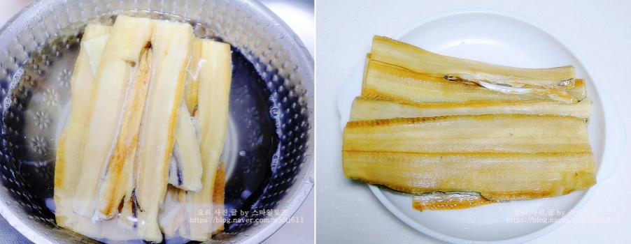 냉동실에 있었던 거라 물에 식초 1큰술을 넣고 5분 정도 담가 놓았다가 건져주면