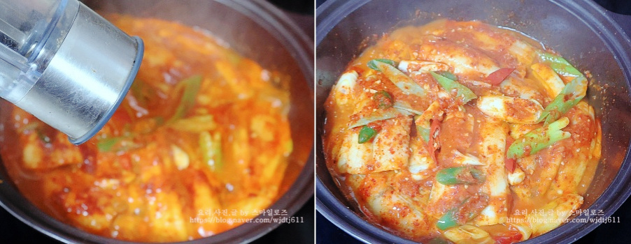 남은 양념장을 모두 부어주고 바글바글 끓여줍니다