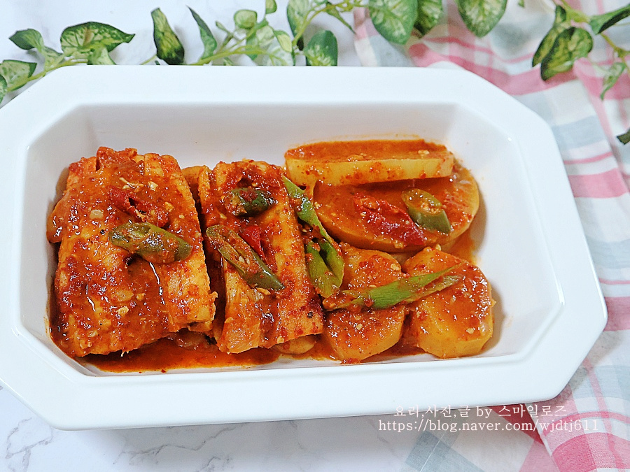 무와 감자를 으깨어 비벼 먹으면 너무 맛있어요