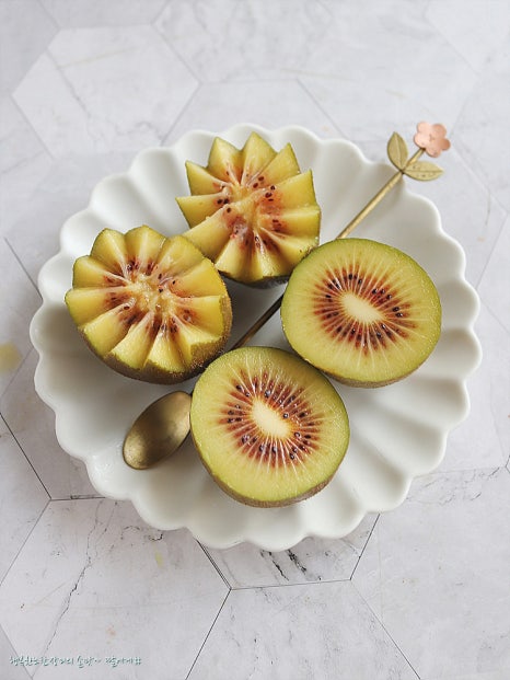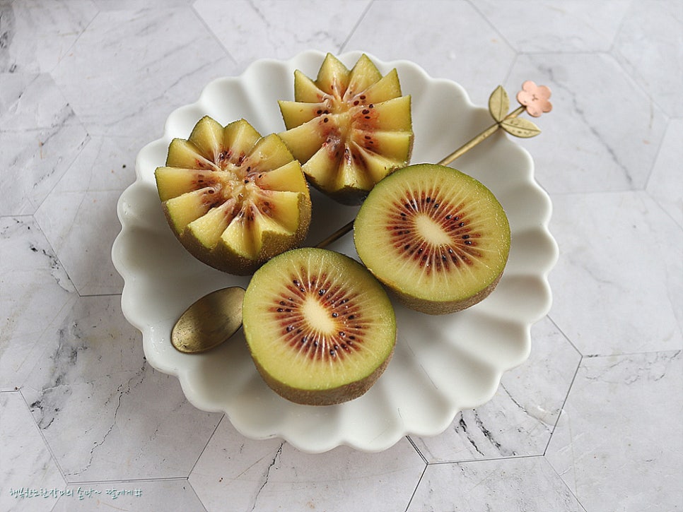 레드키위가 그릭요거트 사이에 이쁘게 보입니다.