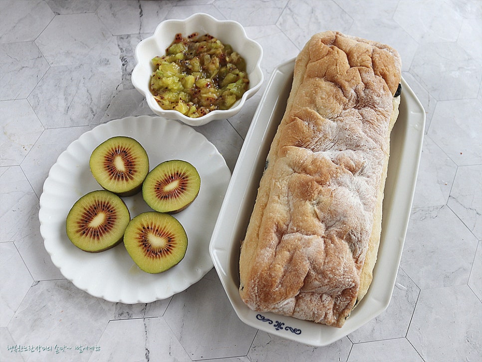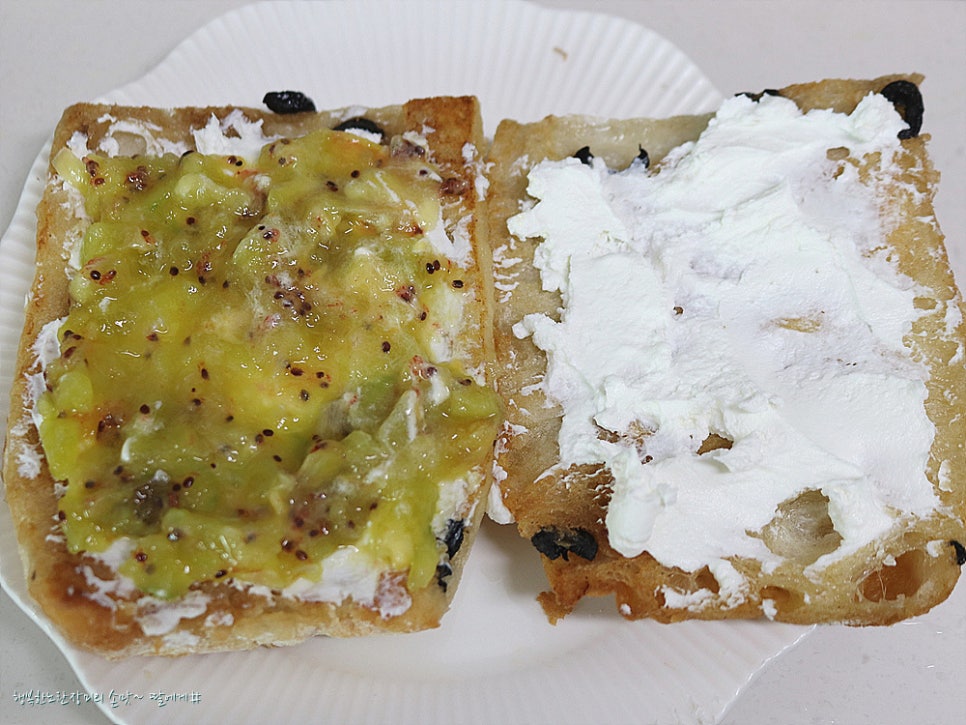 그위에 키위쨈이 아닌 키위 으깬거 쨈처럼 바르고