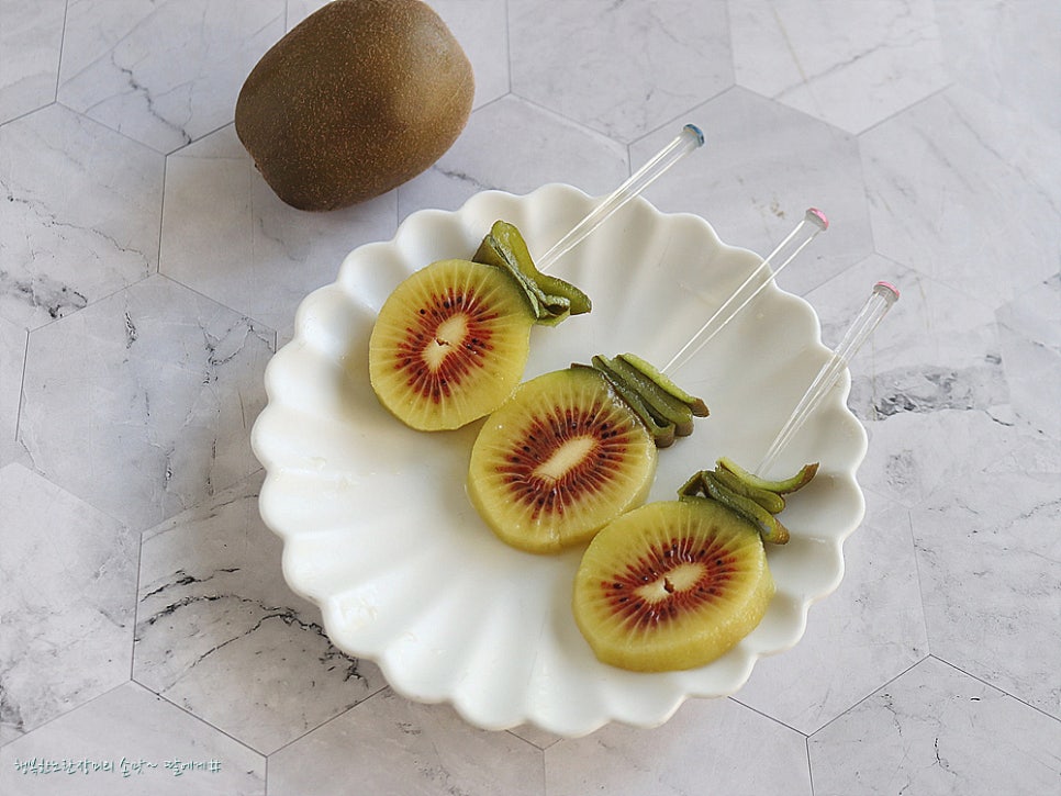 생크림에 키위 통째로 얹어잘라도 이뻐요~