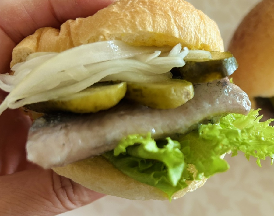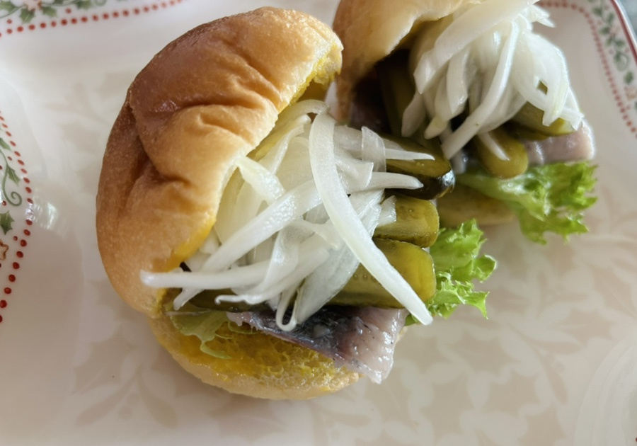 개인적으로 하링을 밥과 먹는 걸 좋아하지만 현지 스타일로 하링 샌드위치를 맹글어 봤어요.