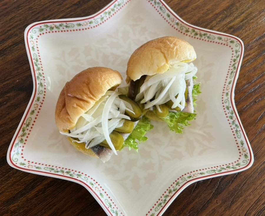 네덜란드 대표 음식중 하나인 청어 절임 하링을 이용해 하링 샌드위치를 만들었어요.