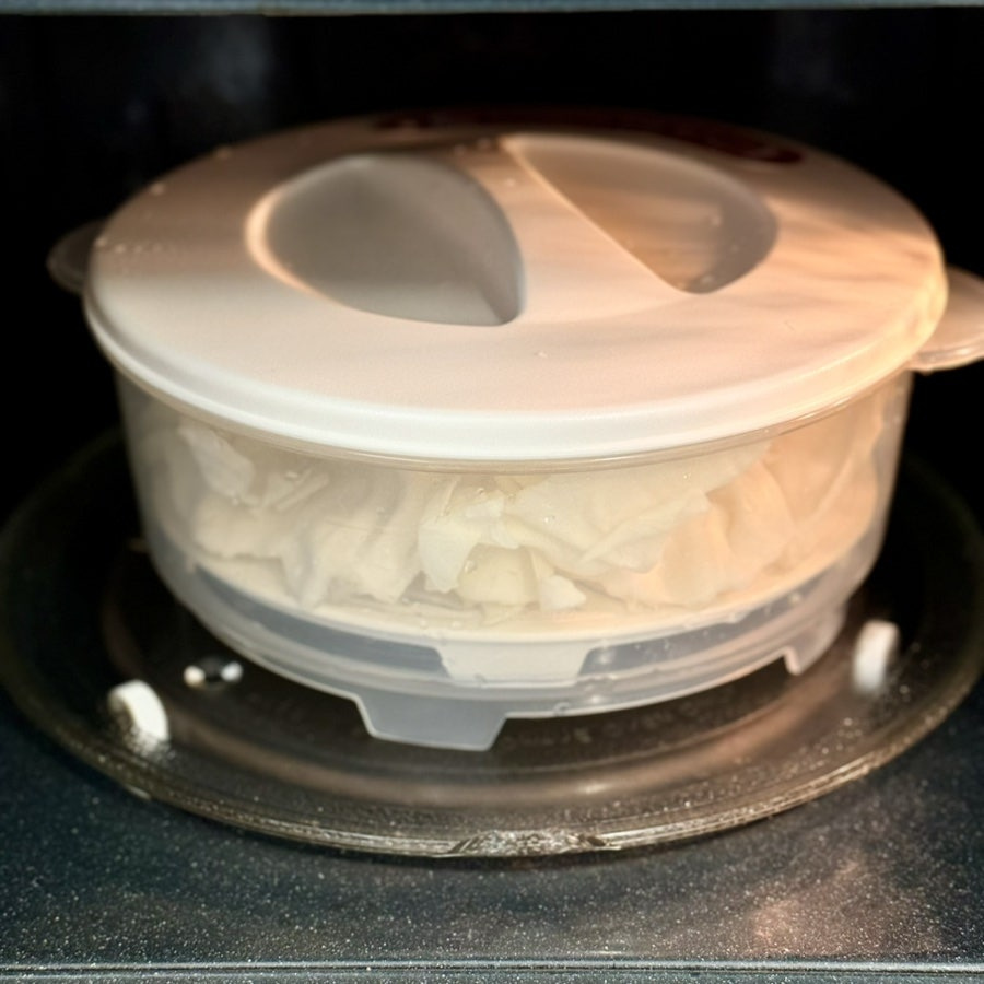 전자레인지용 찜기가 없으실 땐, 넓은 그릇에 물 3T 정도 살짝 넣고, 양배추 올려 주신 후, 랩을 씌워 구멍 3개 정도 뚫어 돌려주셔도 OK!!
