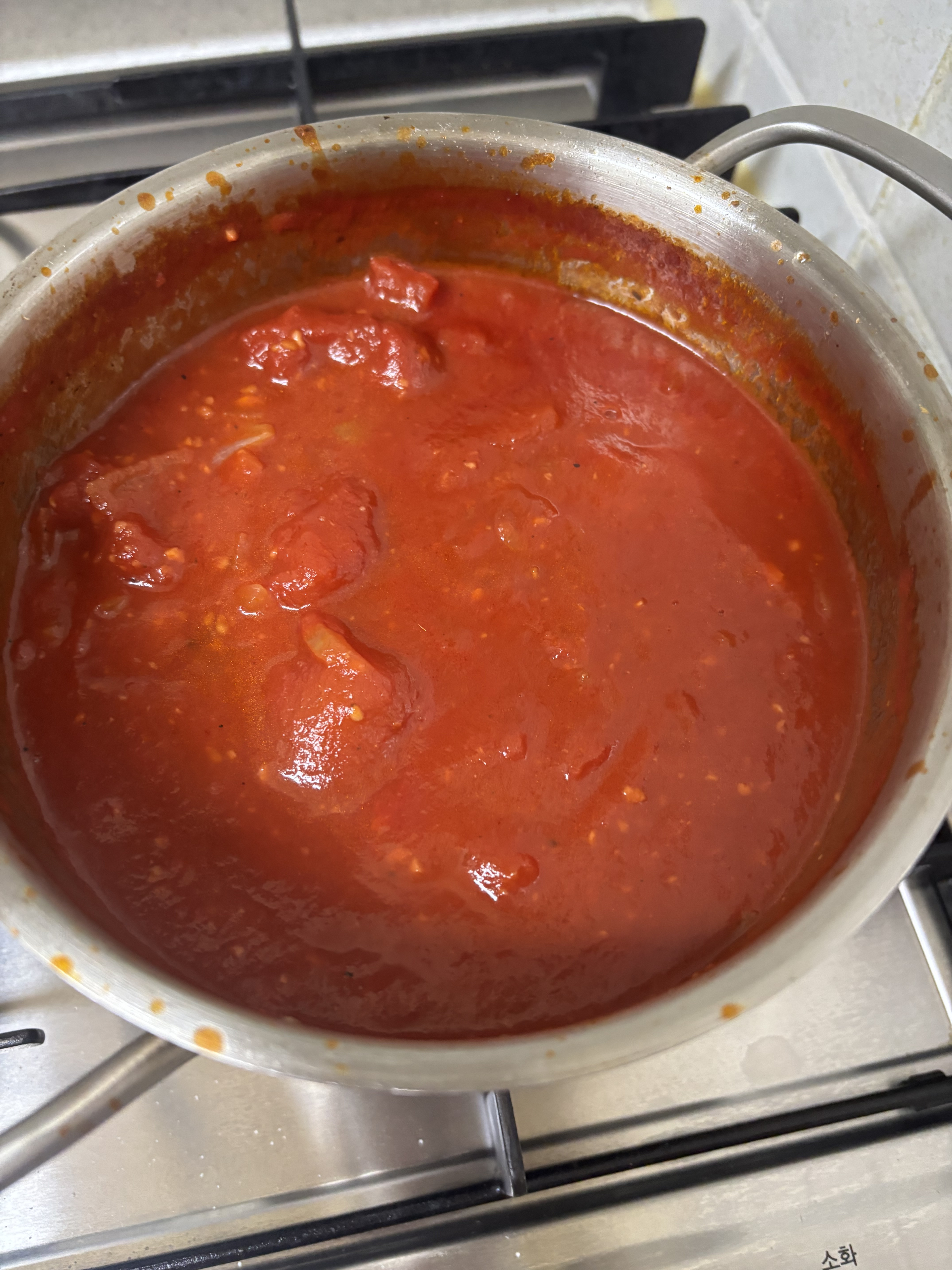 저는 홀토마토 통조림을 구입해서 직접 소스를 만들었어요.