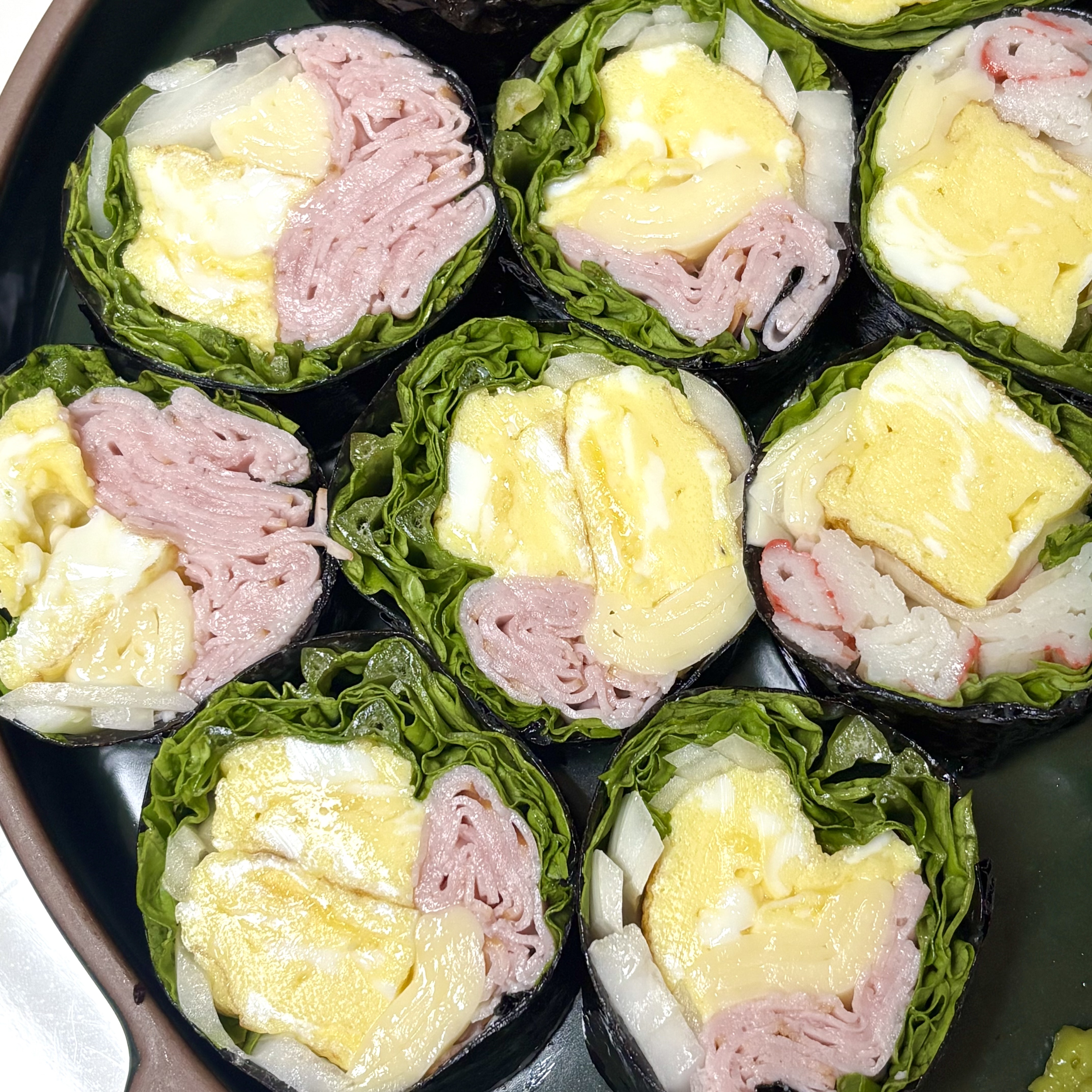 요즘 라이스페이퍼를 밥 대신 넣고 만든 김밥이 유행이었죠.