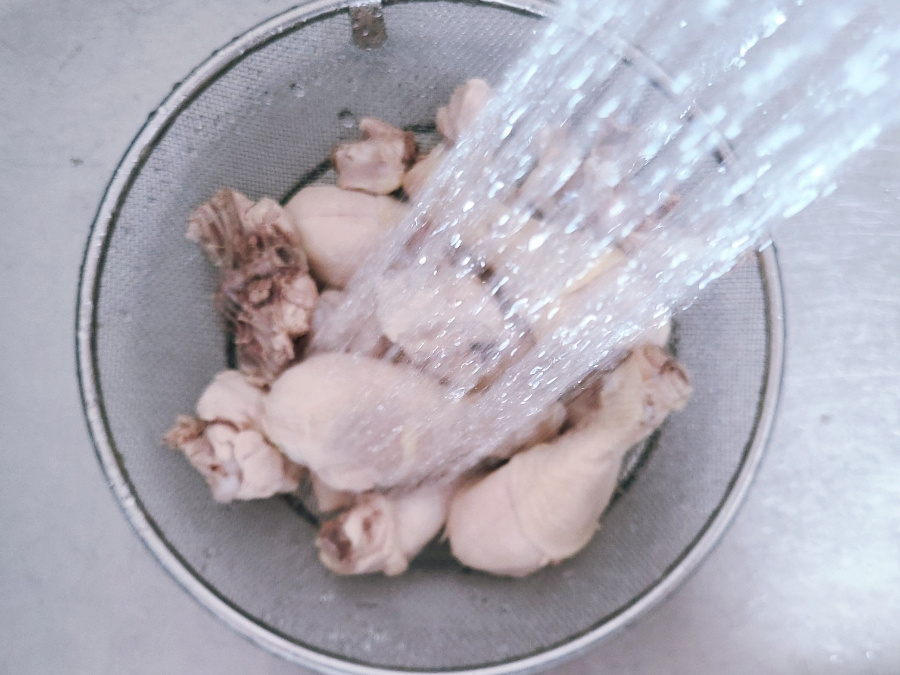 닭과 닭다리를 준비하여 닭 껍질 부분을 문질러서 세척하고 지저분한 껍질과 기름은 가위로 잘라내고 빨간 핏물 덩어리가 있으면 긁어서 떼어내고 세척해줍니다.