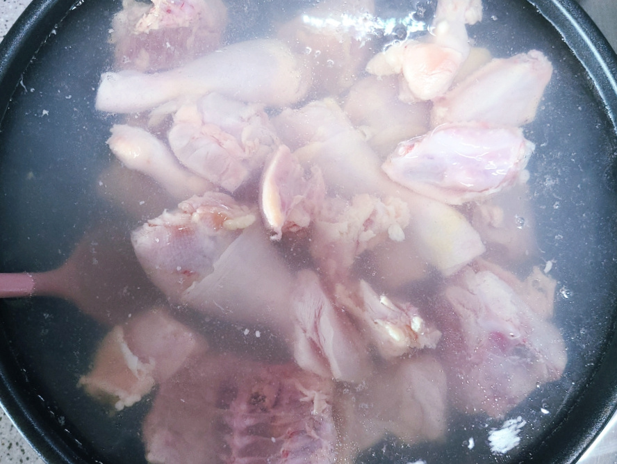 (닭을 미리 데쳐서 닭도리탕을 만들면 불순물과 기름기가 제거 되어 깔끔한 닭볶음탕을 만들수 있어요)
