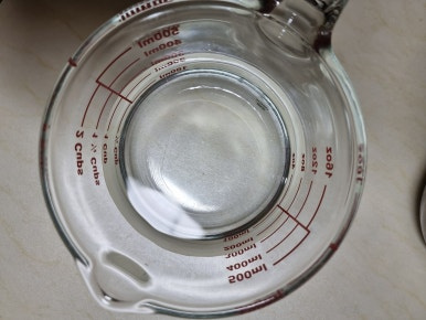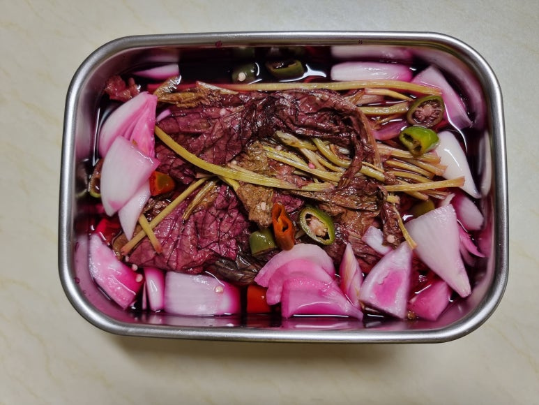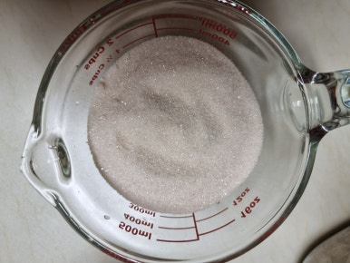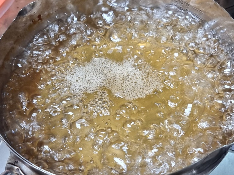 물300ml, 원당 1컵 반, 식초300ml, 소금 1큰술 수북히