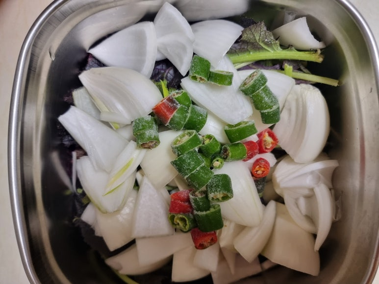 고추를 넣으면 매콤한 향이 식욕을 자극 합니다.