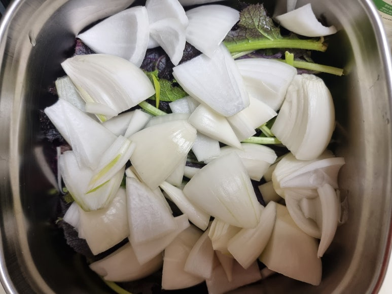 적갓 300g, 식초 2바퀴, 물