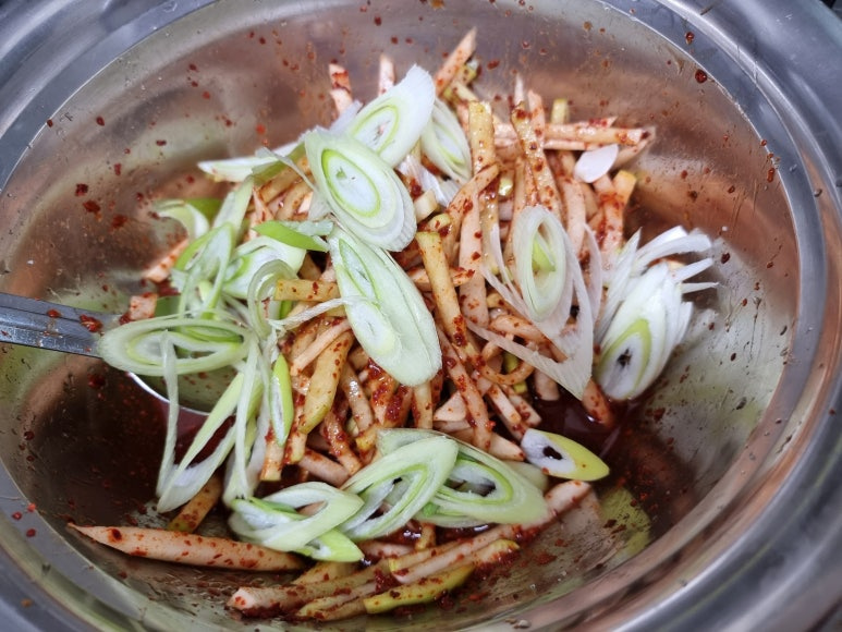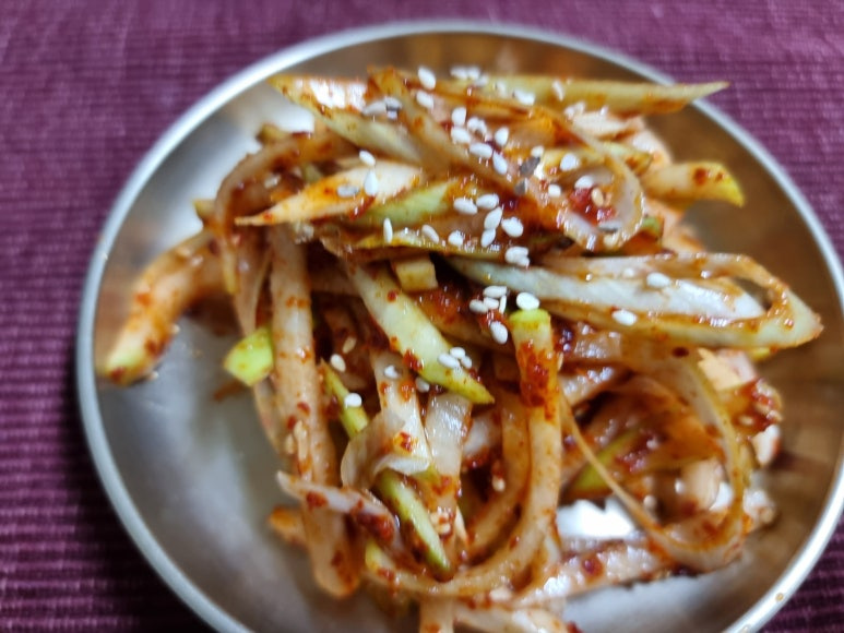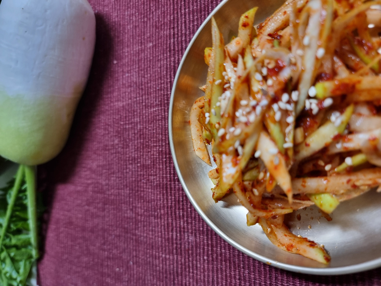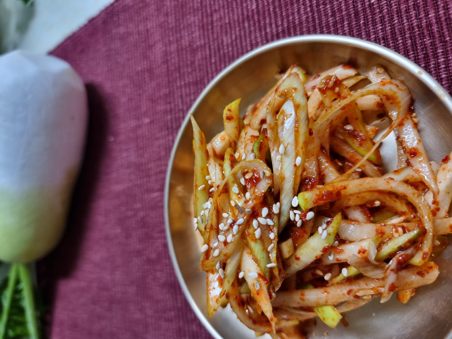 아삭하고 새콤달콤한 맛이 그대로 살아나는 우리 집 밥도둑 무생채, 지금 바로 만들어보세요!