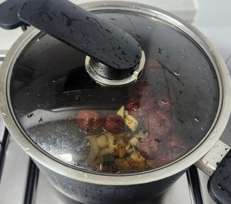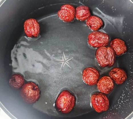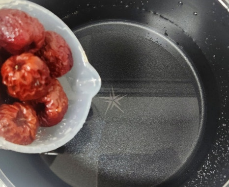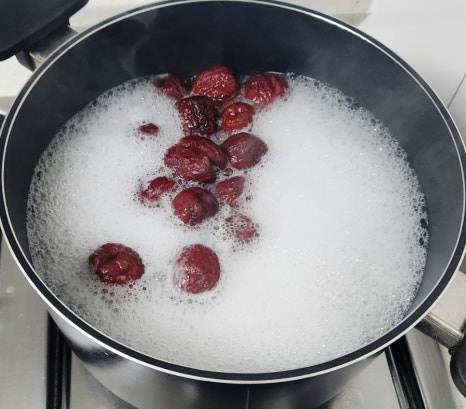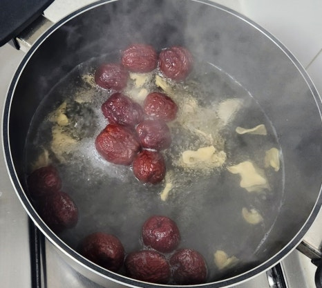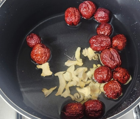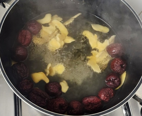 냄비에 준비해둔 대추와 생강을 넣어 주세요. 이제 센 불에서 끓이기 시작합니다.