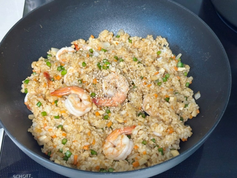 간단하게 점심 한 그릇으로 먹기 좋은 볶음밥! 냉동새우와 마늘쫑을 넣고 볶아서 찬밥을 맛있는 한 그릇으로 만들었어요. 탱글 한 새우 살과 몸에 좋은 마늘쫑을 같이 먹으니 맛있는 볶음밥이더라고요. 양파와 당근까지 냉장고 속 남은 야채와 함께 한 그릇에 담아서 먹기 좋은 볶음밥! 아이들도 좋아하는 새우볶음밥을 만들어 보도록 할게요 :)