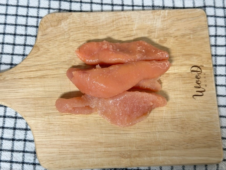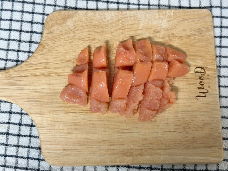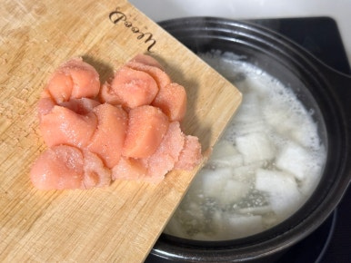 썰어둔 명란젓갈을 넣고 감칠맛이
