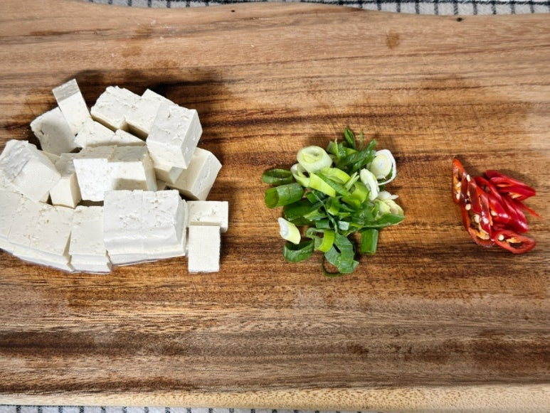 마지막으로 썰어둔 대파와 홍고추를 넣어주세요