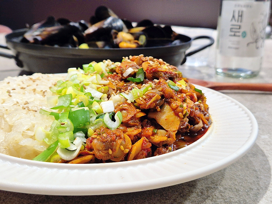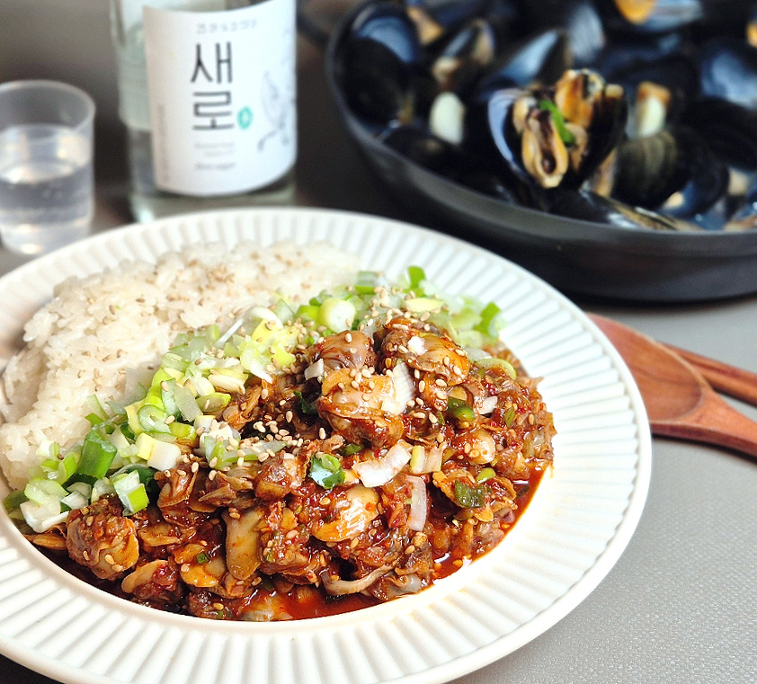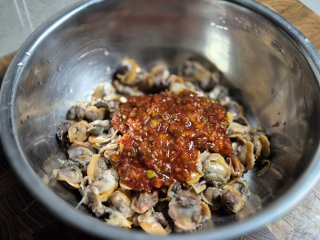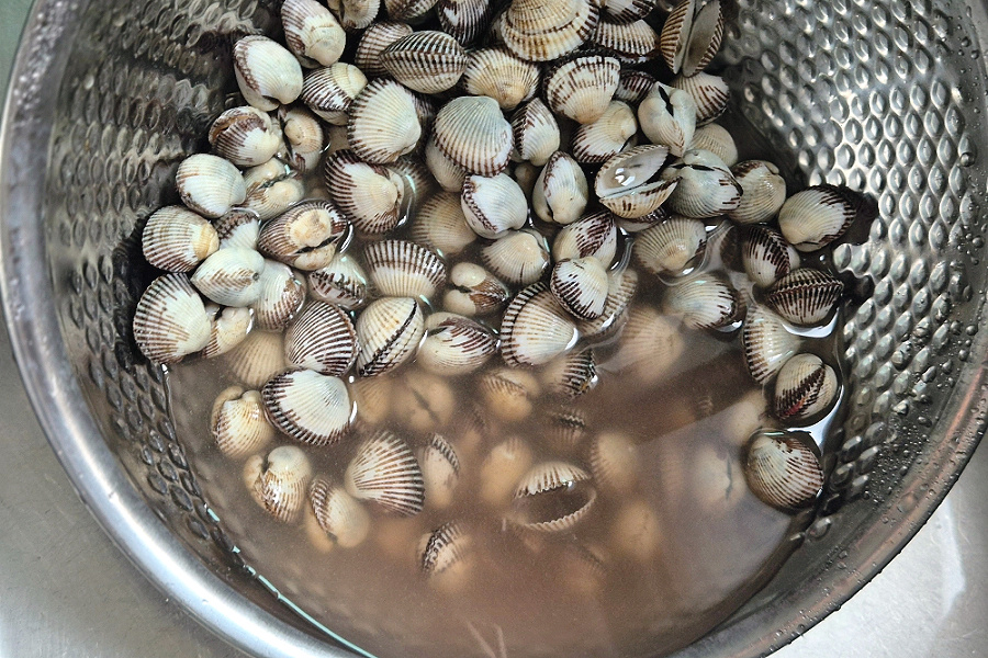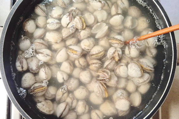 끓는 물에 바로 넣으면 꼬막이 질겨지고 영양분이 빠져나가기 때문에 찬물을 적당히 부어 온도를 떨어트리는 게 포인트랍니다.