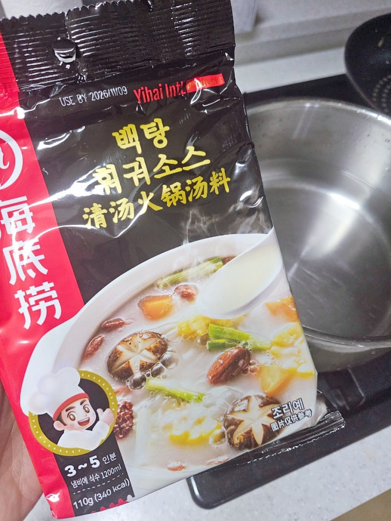 하이디라오 소스를 활용해 만든 담백하고 고소한 백탕 훠궈 레시피 입니다.