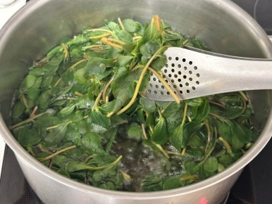 몸에 좋은 장수 나물로 불리는 쇠비름나물! 저도 생소한 나물인데 친정엄마가 집 앞에 자란 쇠비름나물을 뽑아주시더라고요. 몸에 좋은 나물이라며 데쳐서 무침으로 만들어 먹으면 맛있다고 알려주셨답니다. 시금치나물과 비슷한 식감과 맛으로 비타민과 오메가3가 풍부한 쇠비름나물은 항산화 작용을 도와주며 당뇨도 예방하고 면역력을 높여주는 몸에 좋은 약초에요! 끓는 물에 살짝 데쳐낸 쇠비름으로 입맛 돋우는 쇠비름나물 된장무침을 만들어 보도록 할게요 :)