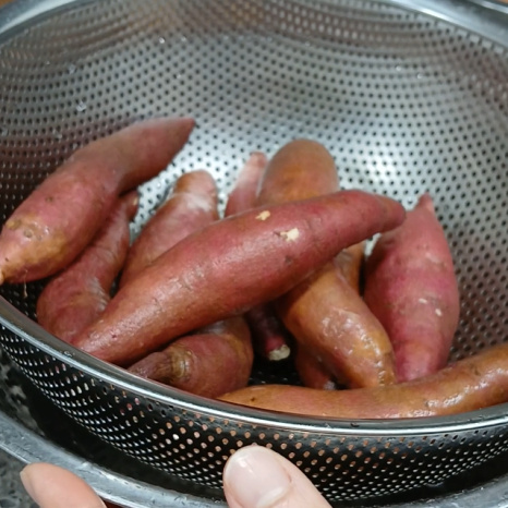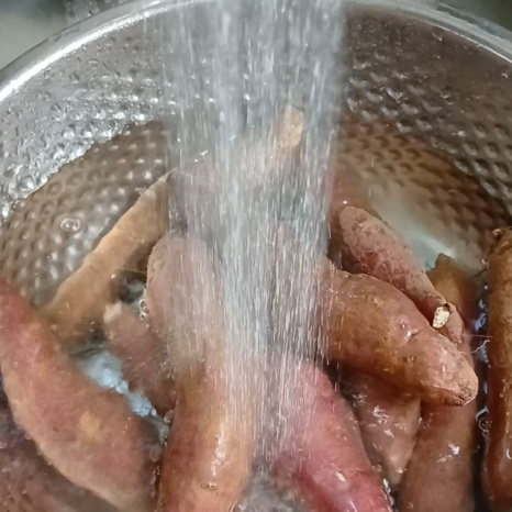 흙이 묻은 고구마는 물에 깨끗하게 씻어냅니다