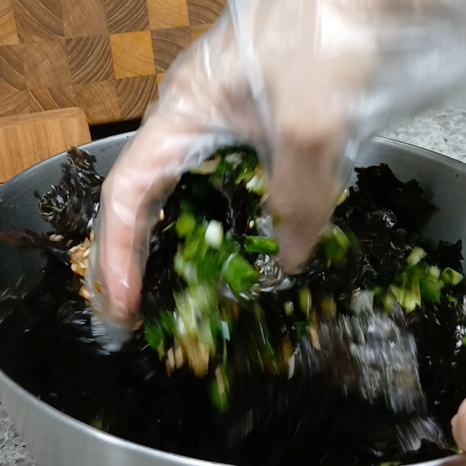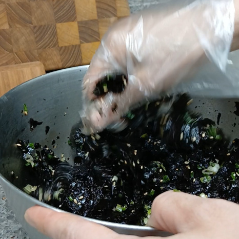 이렇게 버무려주면 김이 뭉치지 않고 양념도 골고루 잘 스며들어요