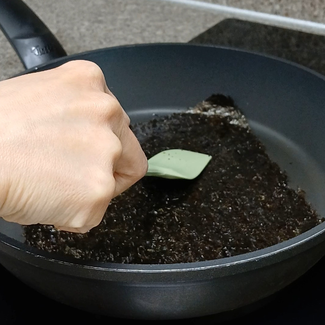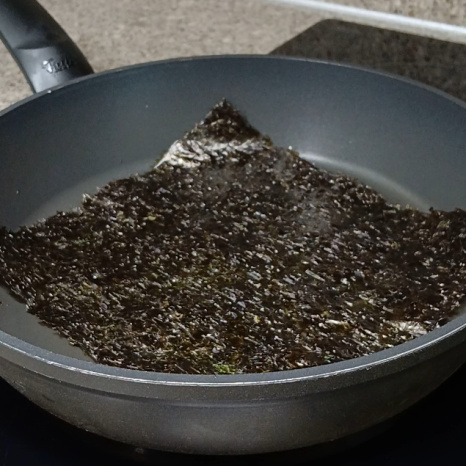 총 10장 준비했어요. 인덕션에 김을 구울 때에는 프라이팬을 사용하면 됩니다