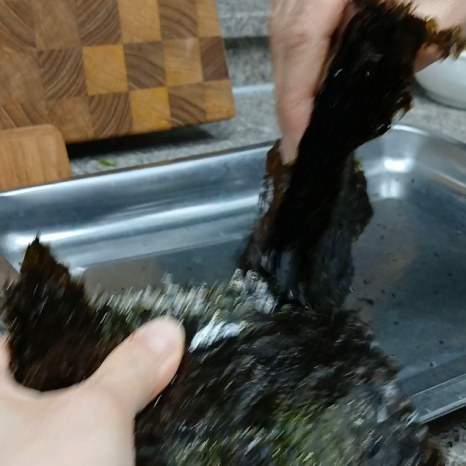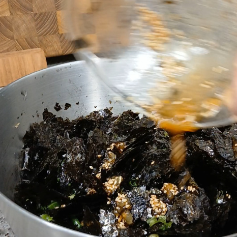 김은 파래김, 곱창김, 김밥김 등 어느 것을 사용해도 상관없어요. 냉동실에 묵혀둔 김 일단 꺼내셔요^^