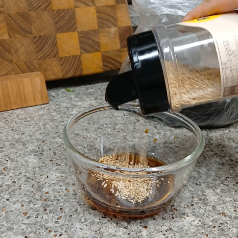 설탕 0.5숟가락, 통깨 1숟가락 넣어 마무리합니다
