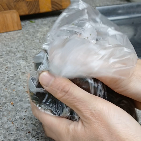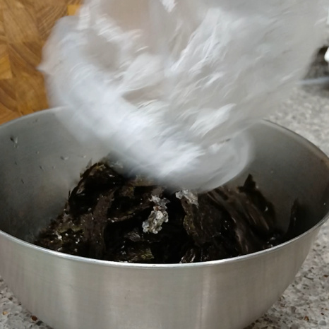 위생팩에 넣어서 김을 부숴주면 김가루가 사방팔방 날리지 않고 깔끔하게 부술 수 있어요