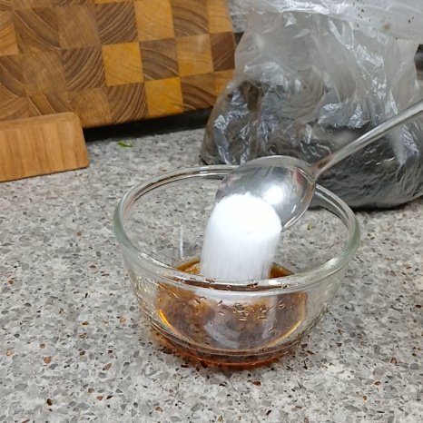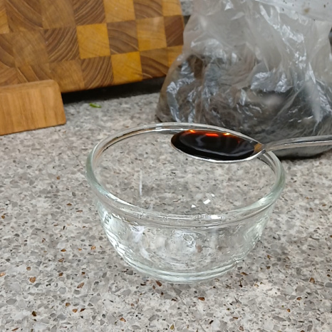 그릇에 진간장 1숟가락, 매실청 1숟가락 넣어주세요