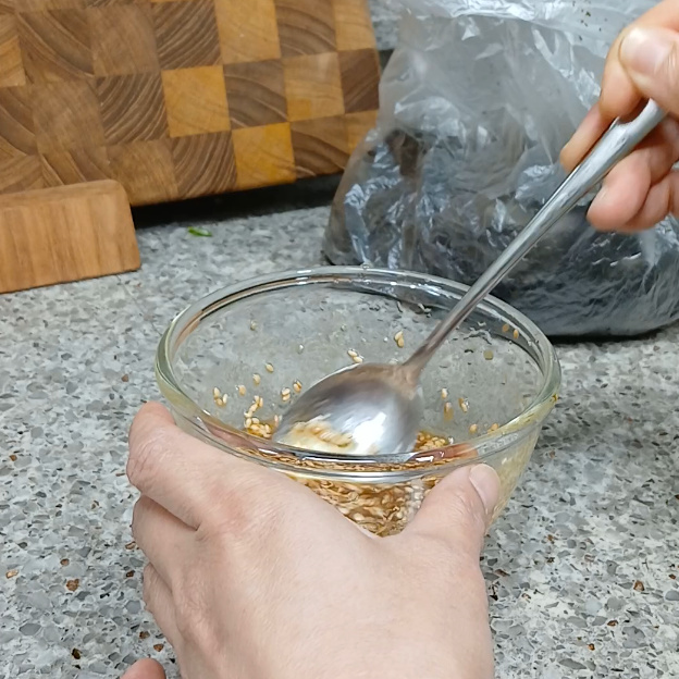 남은 양념을 싹싹 긁어 넣고 또 한 번 섞어주고~