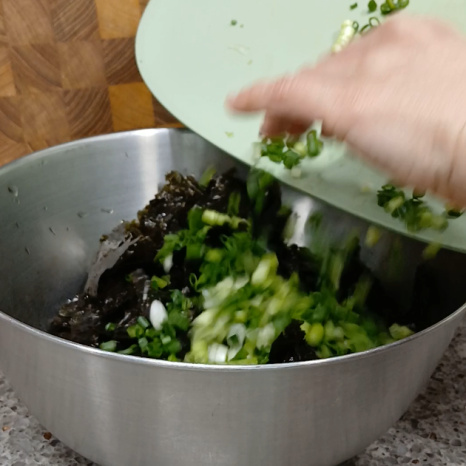 넉넉한 볼에 부순 김과 쪽파를 모두 넣어주세요