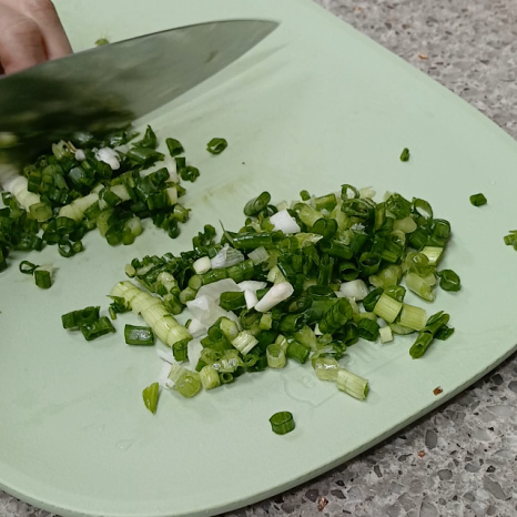 깨끗하게 씻은 쪽파는 칼로 쏭쏭 잘게 썰어주세요