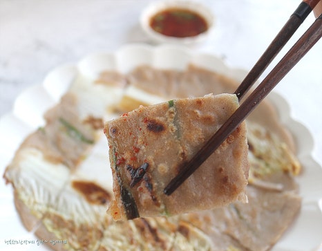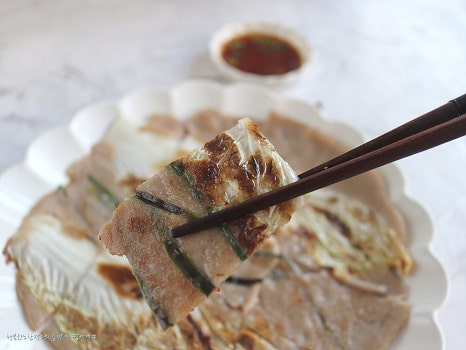 밀가루반죽에 배추 묻혀 기름 둘러 부치는 건데