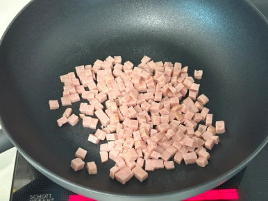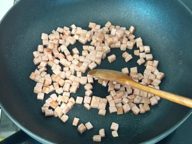 김밥용 스팸으로 볶음밥을 만듭니다.