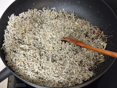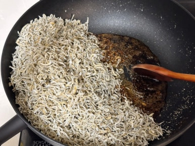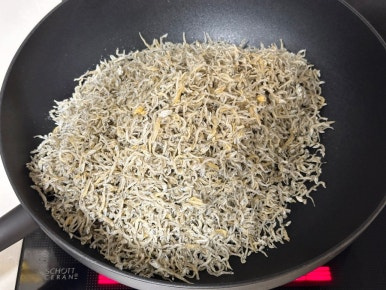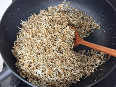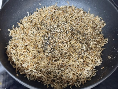 달궈진 팬에 잔멸치를 넣고