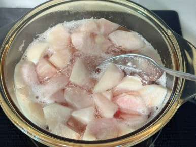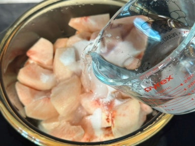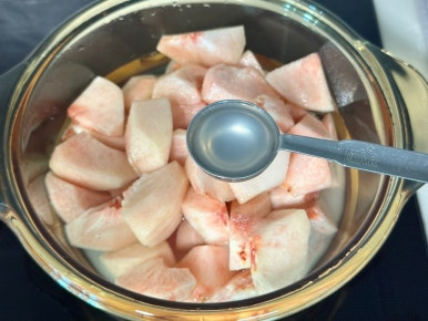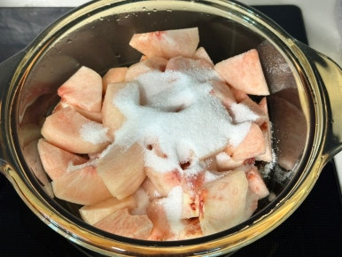 복숭아 3개 , 물 300ml , 설탕 100ml , 레몬즙 1T