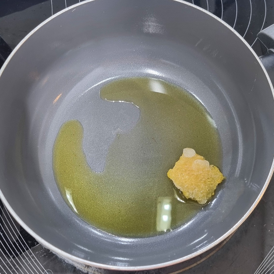 들기름 2큰술에 다진마늘 1큰술 넣어주세요
