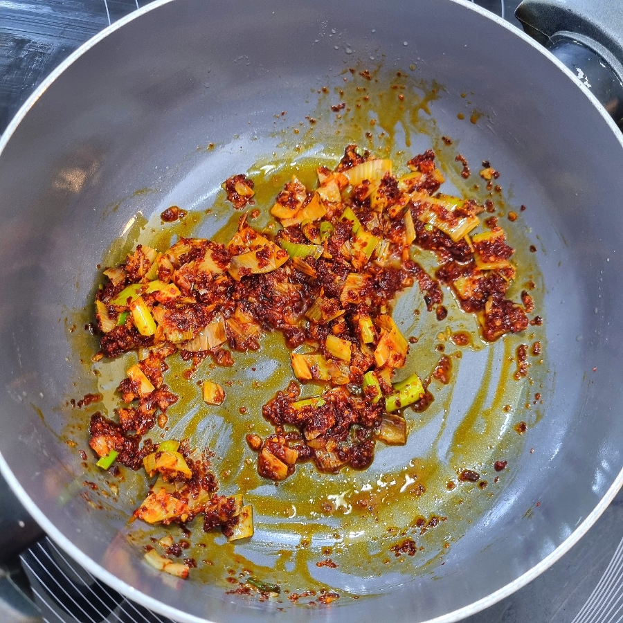 다진대파, 다진마늘 1큰술 넣고