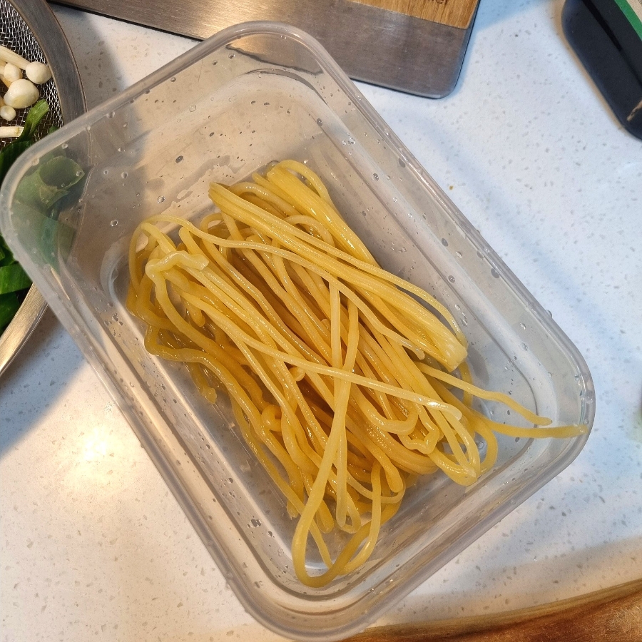 쫄면사리는 물에 살짝 헹궈서