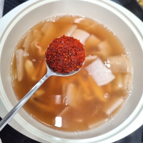 다진마늘 1큰술, 고춧가루 1.5큰술