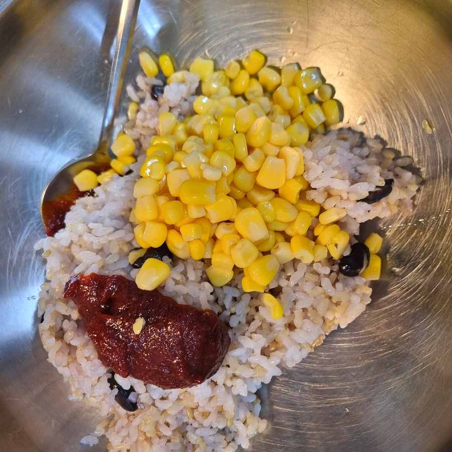 콘옥수수 듬뿍 2~3큰술 넣어주세요