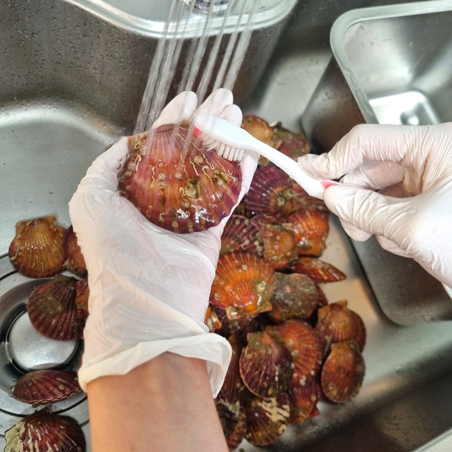 가리비는 칫솔로 껍질을