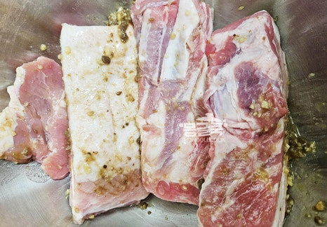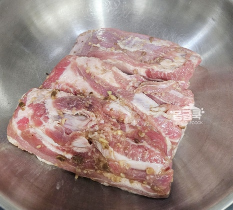 돼지고기에 겉면에 바른 후 10분 정도 재워두세요.