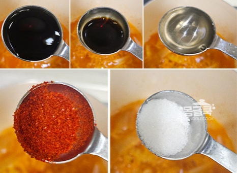쯔유 1큰술, 진간장 1/2큰술, 맛술 1큰술, 설탕 1/2작은술, 고춧가루(선택), 청양고추(선택)를 넣고 끓여주세요.